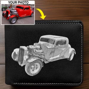 Hot Rod Personalized Photo Printed Leather Men Bifold Wallet; funny gift for HotRodders (Sketc)
