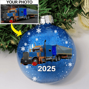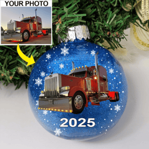 Big Truck Personalized 3D Ball Ornament, Big Rig custom photo 3D ornament, Trucker Christmas tree decor (Ball)