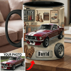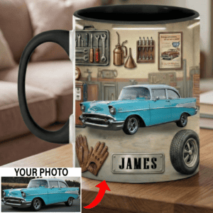 Custom Photo & Name Classic Car Accent Mug – Personalized Funny Gift for Car guys (BK593)