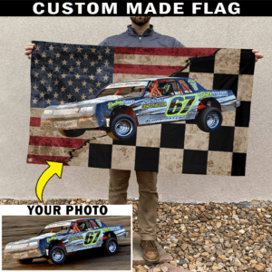 Personalized Dirt Track Racing American Flag; Dirt racing custom photo American flag; funny gift for Dirt track racers
