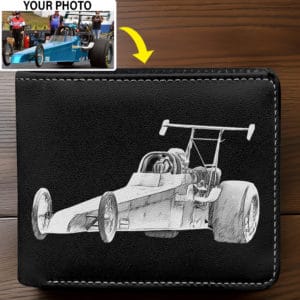 Drag Racing Personalized Photo Printed Leather Men Bifold Wallet; funny gift for Drag Racers (Sketc)