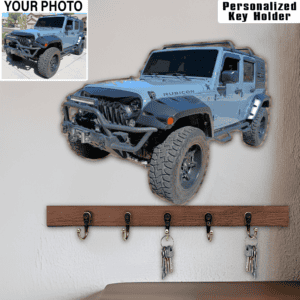 Personalized Jeep Custom Photo Wooden Key Holder, Funny gift home garage decor for Jeep enthusiasts (keyholder)