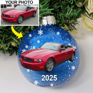 Muscle Car Mustang Personalized 3D Ball Ornament, Mustang custom photo 3D ornament, Mustang Christmas tree decor (Ball)