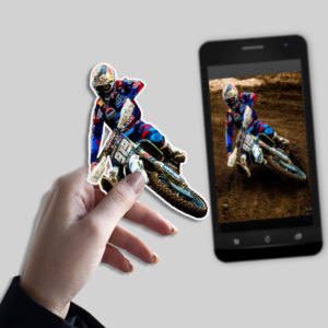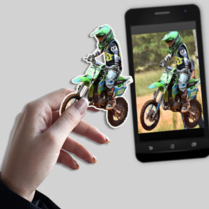 Motocross Personalized Stickers; Custom photo die-cut sticker for Dirt Bike Racing fan.