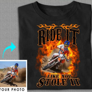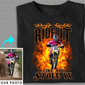 Motorcycle Personalized T-shirt, Biker custom photo t-shirt, gift for bikers Print Ride it like you stole it (BK115)