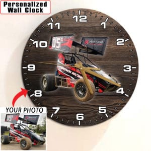Personalized Sprint Car Racing Wooden wall clock; custom Photo Wooden Wall Clock; sprint car racing home garage decor; xmas gift for sprint car racers