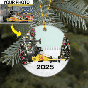 Personalized Photo Drag Racing Lovers Ceramic Ornament, Drag Racing Christmas tree decor
