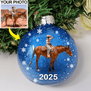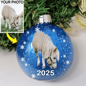 Personalized Photo Horse Lovers Glitter Plastic Ornament, Horse Christmas tree decor