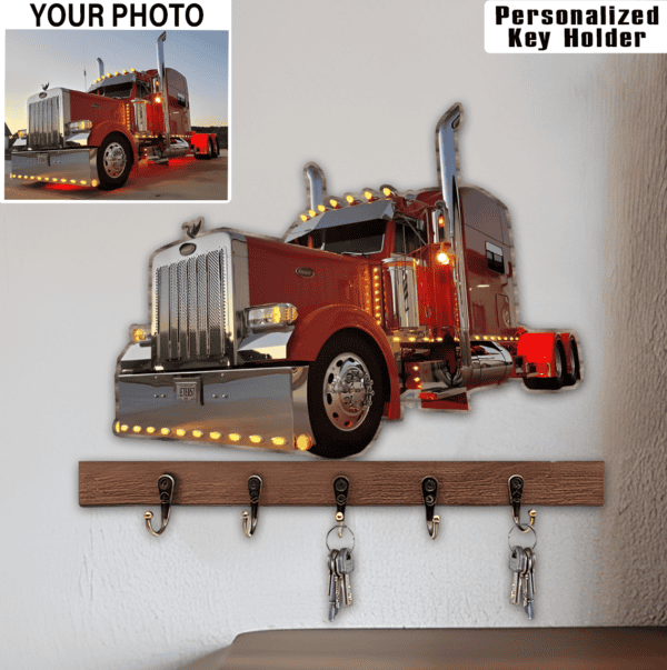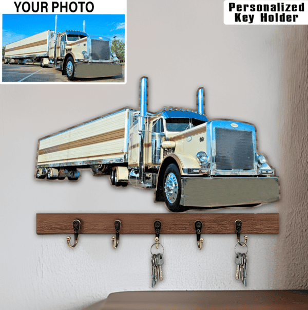 Personalized Big Truck Custom Photo Wooden Key Holder, Funny gift home garage decor for Truckers (keyholder)