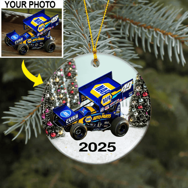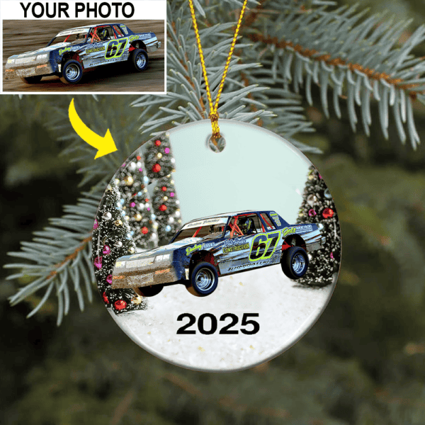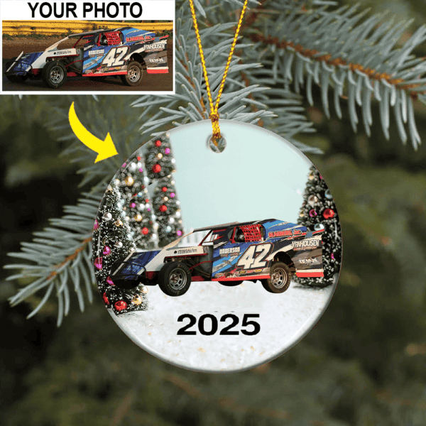 Personalized Photo Dirt Track Racing Lovers Ceramic Ornament, Dirt Track Racing Christmas tree decor