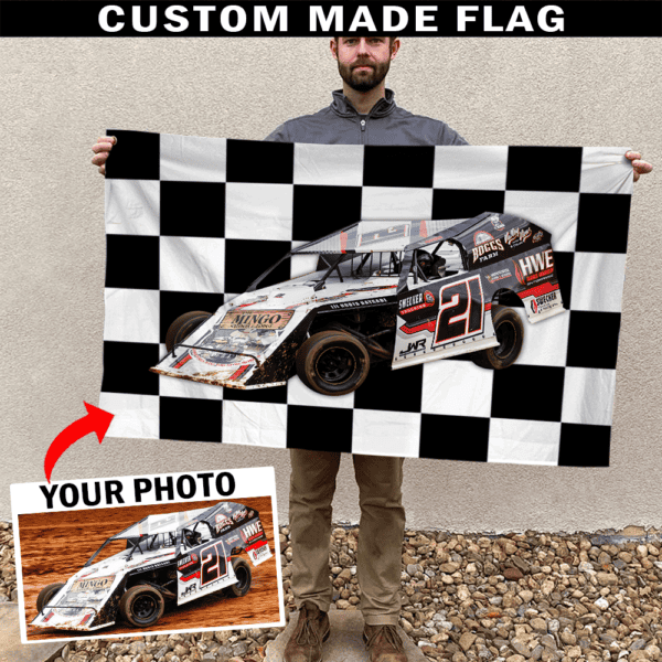 This Custom Flag is ready to send a message, it’s the perfect size and indoor/outdoor safe. The flag has 2 metal grommets for hanging. The single side design flag is printed onto a semi-transparent moisture wicking material.