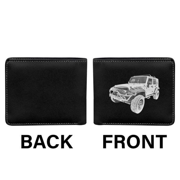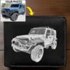 Jeep Personalized Photo Printed Leather Men Bifold Wallet; funny gift for Jeep Lovers (Sketc)