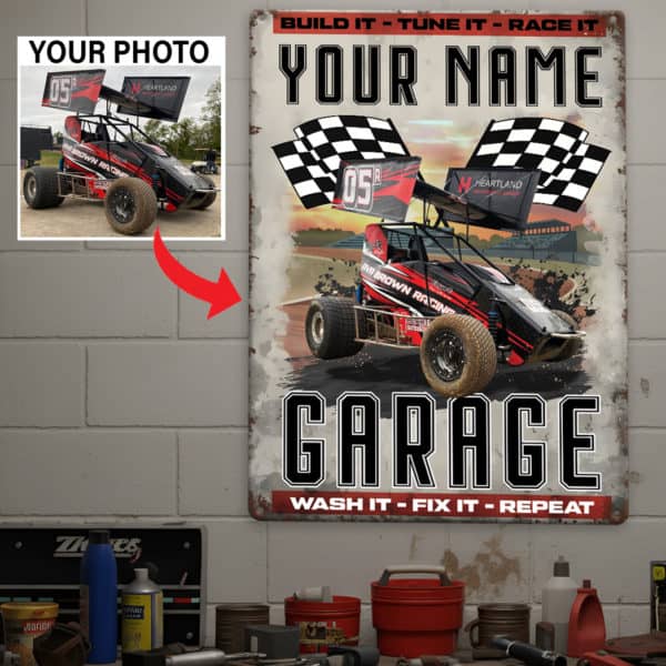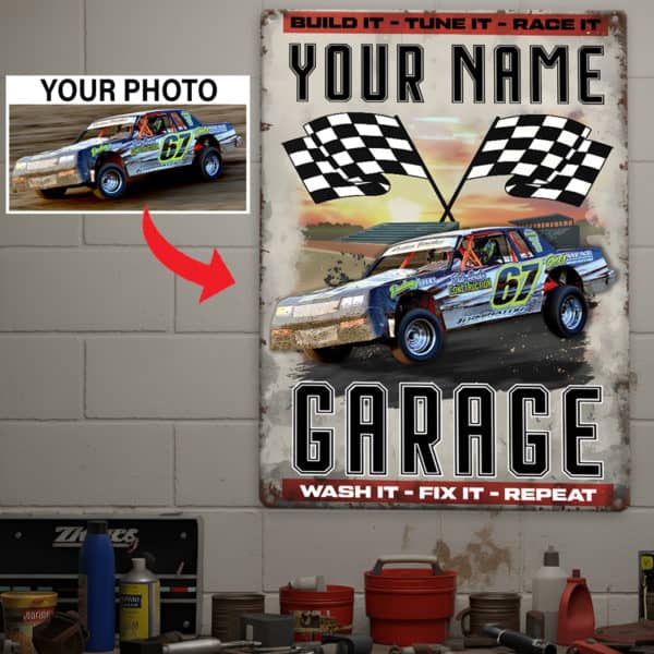 Personalized Photo & Name Dirt Track Racing Printed Metal Sign, Dirt Track Racing custom photo & name printed metal sign; home garage decoration gift for dirt track racers (BK574)