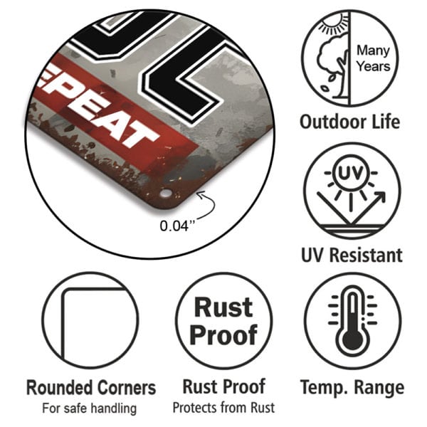 • Full colour print on high quality 0.5mm aluminium which produces a strong and vibrant finish. You can install these funny signs anywhere indoors or outdoors.