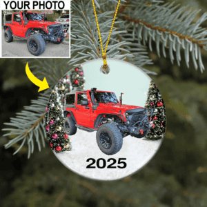 Personalized Photo Jeep Lovers Ceramic Ornament, Jeep Christmas tree decor